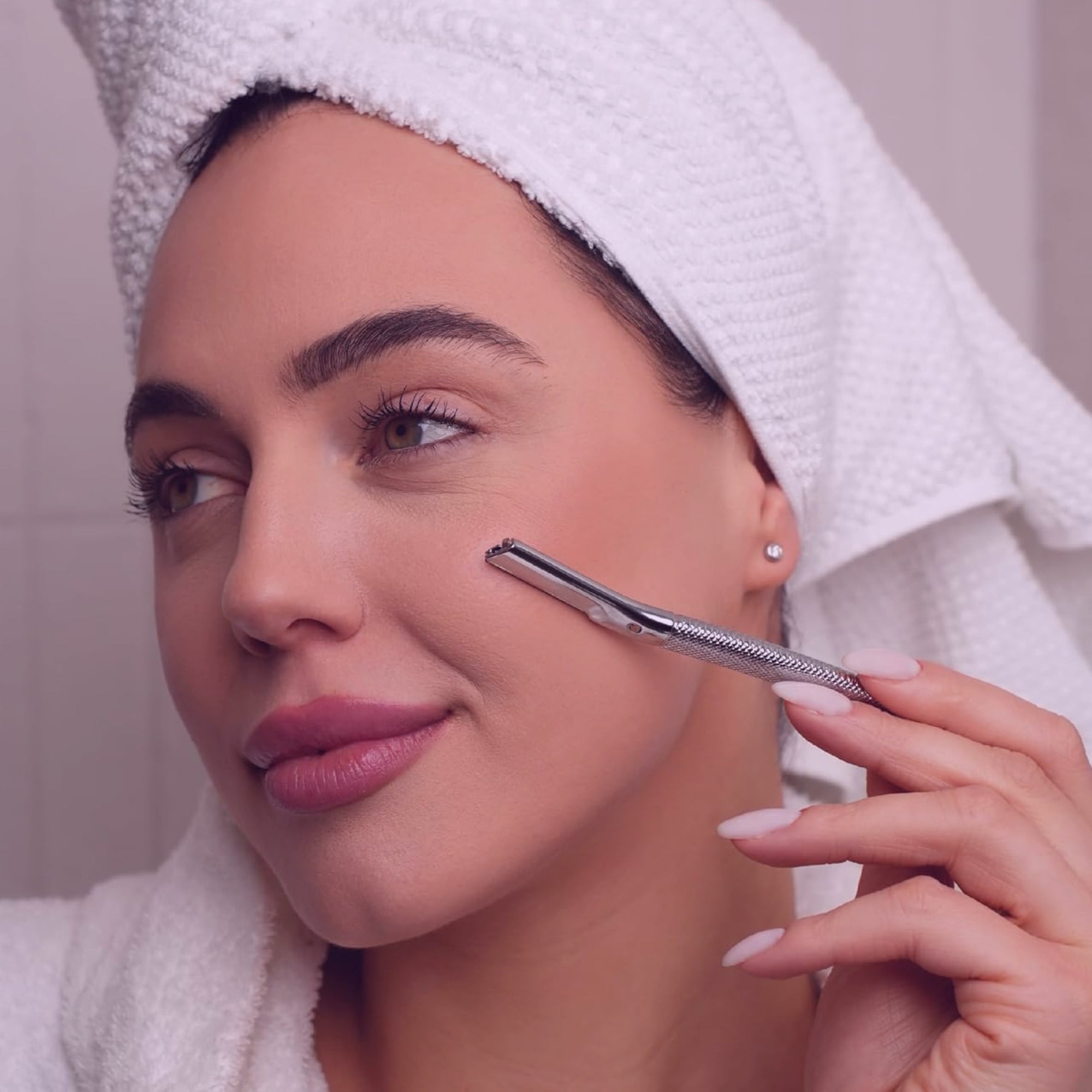 Exfoliá, perfilá y renová tu piel en casa con resultados profesionales. Nuestra herramienta de dermaplaning elimina pelusa facial y células muertas, dejando tu piel más suave, luminosa y lista para potenciar tu rutina de cuidado.